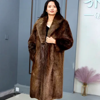 • Women's Long V-Neck Beaver Fur Coat Soft Full Length Beaver Mink Coat Cozy Women's Fashionable Outerwear Custom Service