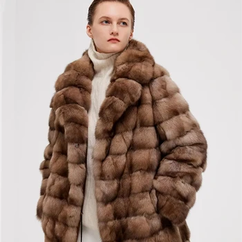 • Super Nice Quality Russia Sable Fur Coat With Bigger Collar Original Price Vintage Sable Coat Factory Cost Mink Coat