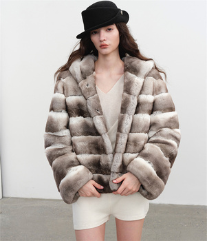 Comparable to Chinchilla Natural-colored Rex Rabbit Fur Super Delicate Stand-up Collar Womens Rabbit Fur Coat Mink Coat