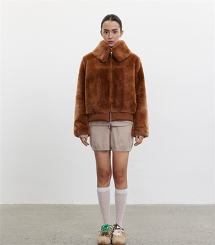 Stand-up Collar Two-way Double-zipper Imported A-grade Loose-fitting Fashion Rabbit Fur Coat rare Rabbit Winter Jacket Mink Coat